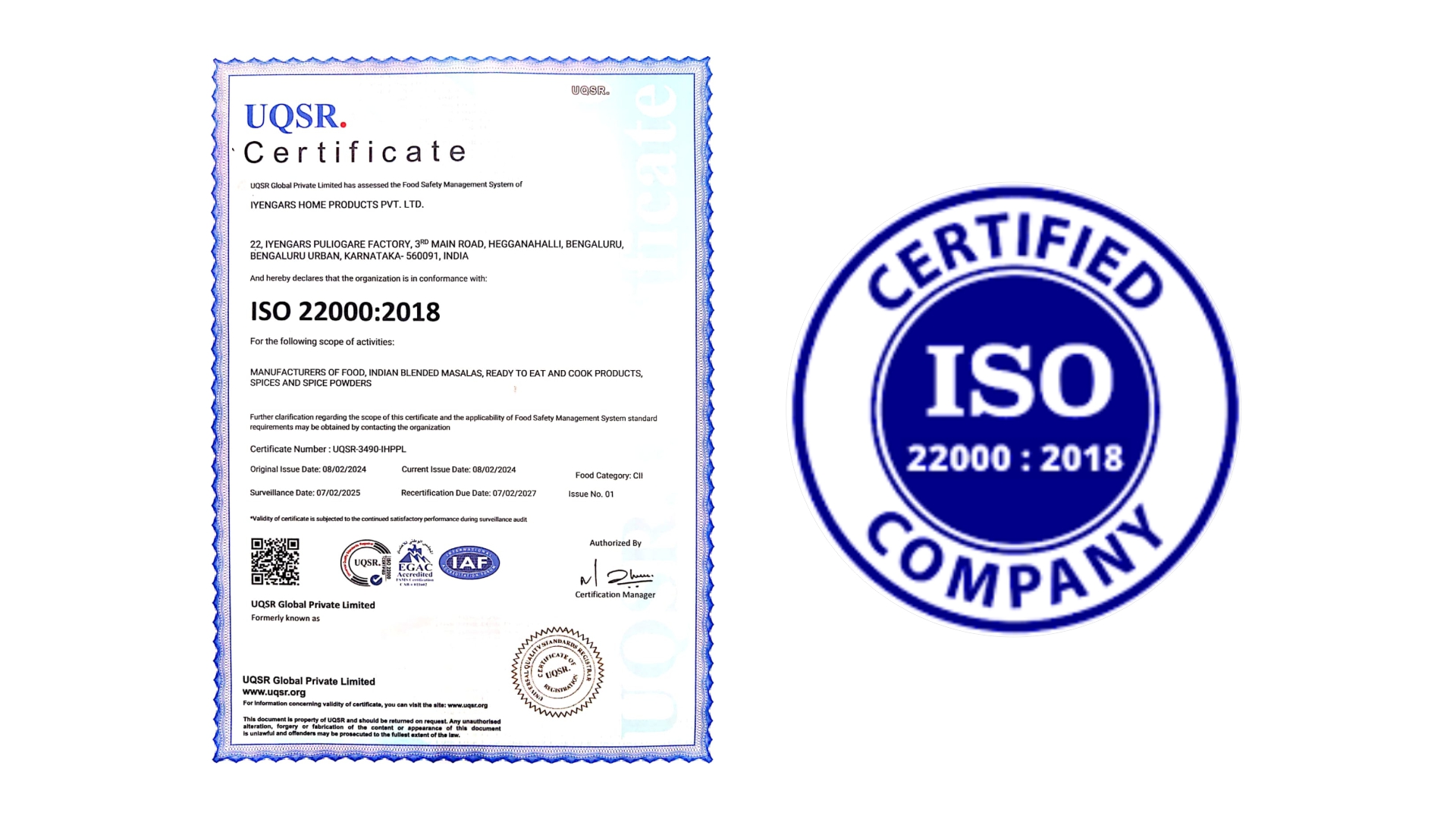 Moreover, the brand is backed by a strong suite of industry certifications, including ISO 22000:2018, ISO 9001:2015, GMP, HACCP, USFDA, Indian Spice Board, and FSSAI. This comprehensive set of credentials underscores the company’s unwavering commitment to safety, quality management, and food standards, ensuring customers receive authentic and reliable products.